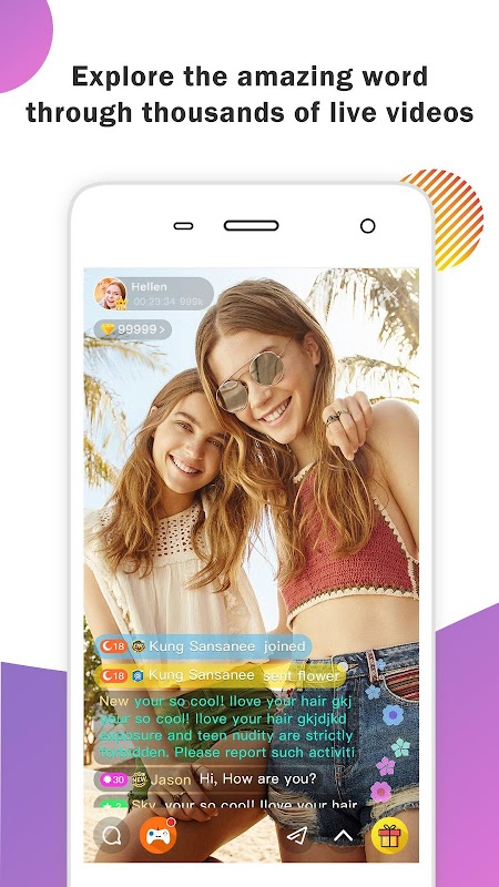 You can broadcast your life,gain many fans,receive gifts,earn money and be an idol easily.