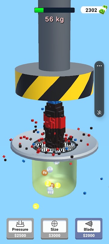 پرس هیدرولیک را کار کنید و اجسام را به آرامی بشکنید. خیلی واقع بینانه است! با دستگاه پرس هیدرولیک می توانید تقریباً هر جسمی را که می خواهید خرد کنید. با خرد کردن، سکه به دست می آورید و دستگاه را ارتقا می دهید