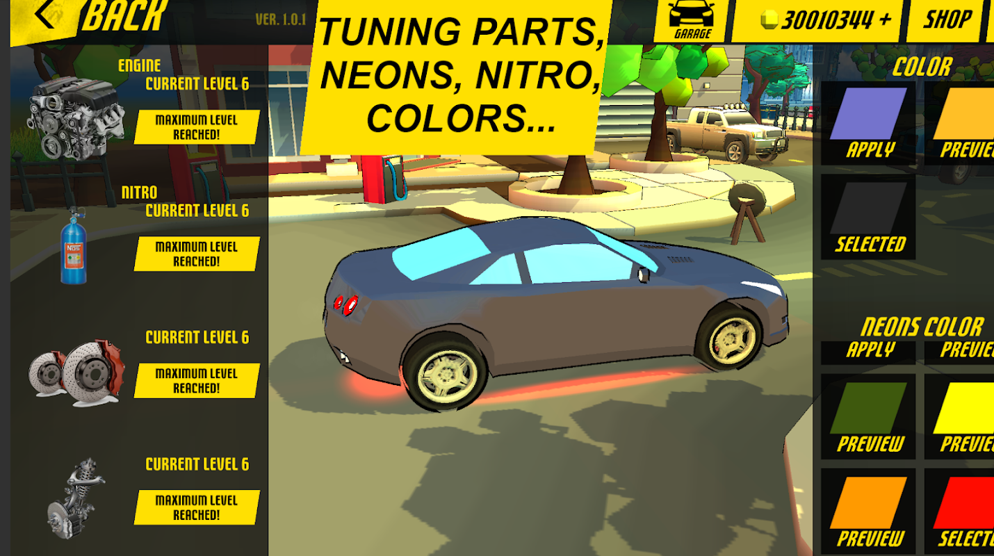Racing arcade, cruising, streetracing, tuning (colors, neons, spoilers etc.)!