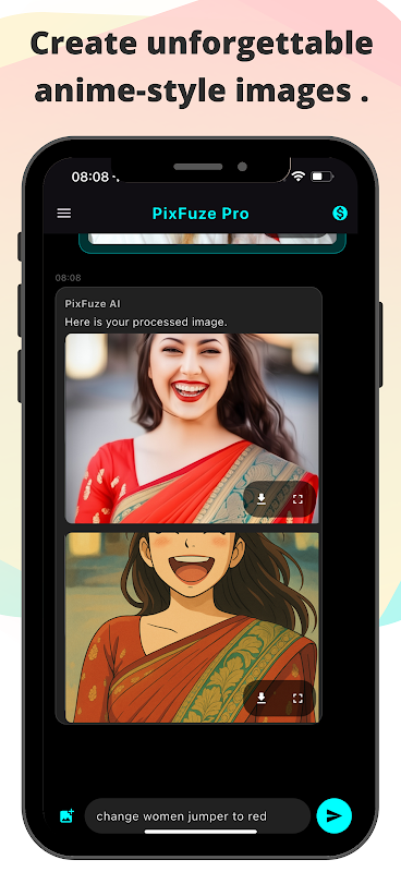 • انیمه و سبکهای خلاقانه - عکسهای معمولی را تنها با یک ضربه به هنر خیرهکننده الهام گرفته از انیمه تبدیل کنید. • استفاده آسان - فقط یک عکس آپلود کنید، ویرایش خود را تایپ کنید و بگذارید PixFuze بقیه کار را انجام دهد.