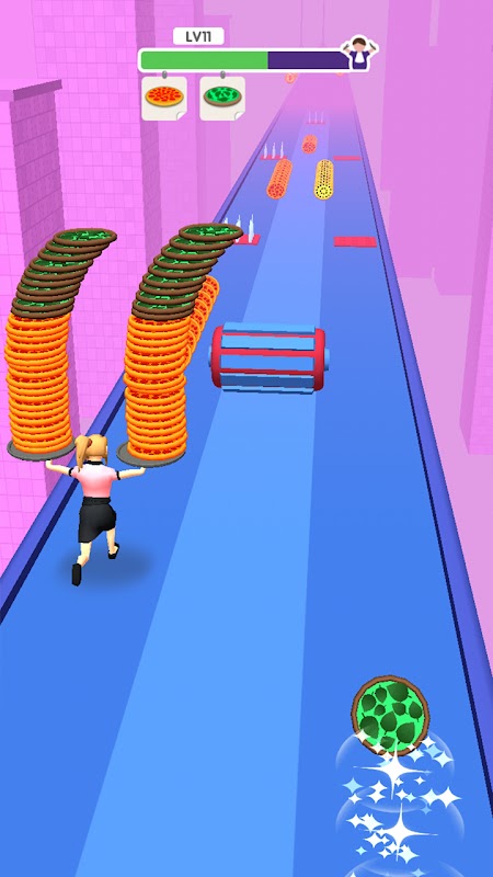 You need to adjust your course of action to avoid obstacles and collect as many pizzas as possible. Gold coins are the same.