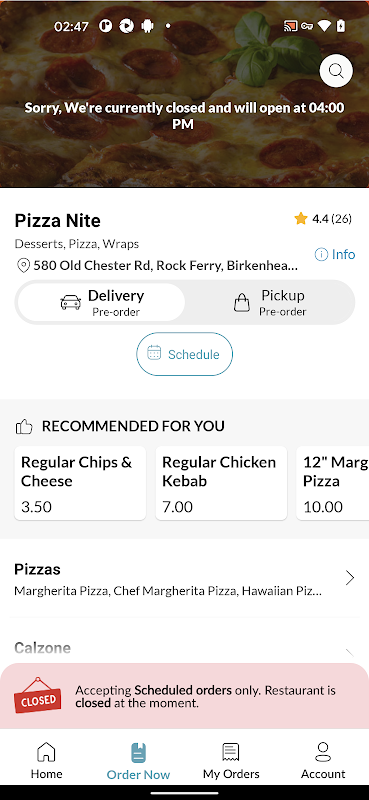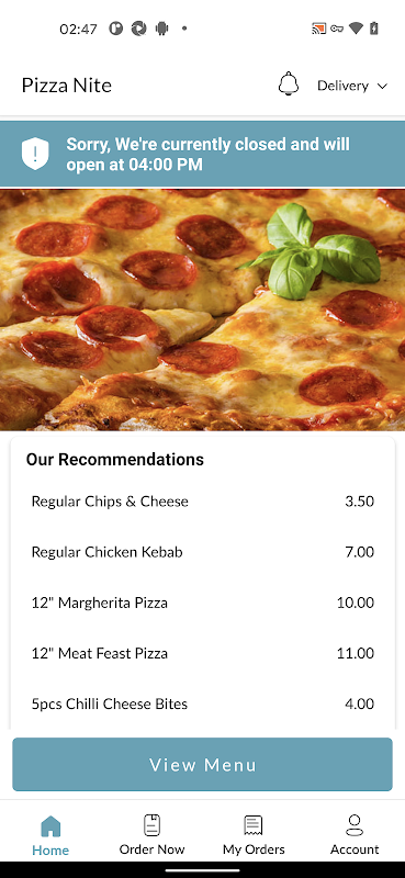 گرسنگی خود را با پیتزا نایت، متخصصان محلی خود در ارائه غذاهای خوش طعم رفع کنید. برنامه ما کاوش منوی وسوسه انگیز ما و سفارش موارد دلخواه خود را تنها با چند ضربه آسان می کند. به سادگی سبد خود را پر کنید، با خیال راحت تسویه حساب کنید و پرداخت را با پول نقد یا کارت انتخاب کنید - هر چیزی که برای شما مفید است.