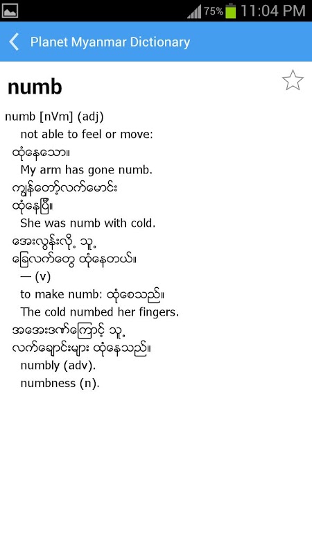 Planet Myanmar Dictionary is dedicated to Planet.com.mm user who would like to use Planet Dictionary through their Android OS based mobile phone without accessing Internet. It's easy to search and save your favorite word in their mobile.