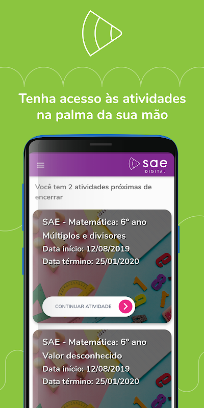 Agora, todos os alunos das escolas conveniadas com o SAE Digital têm o aplicativo da plataforma AVA. Com ele, os alunos podem fazer suas atividades a qualquer momento e em qualquer lugar de forma muito mais rápida e simples.