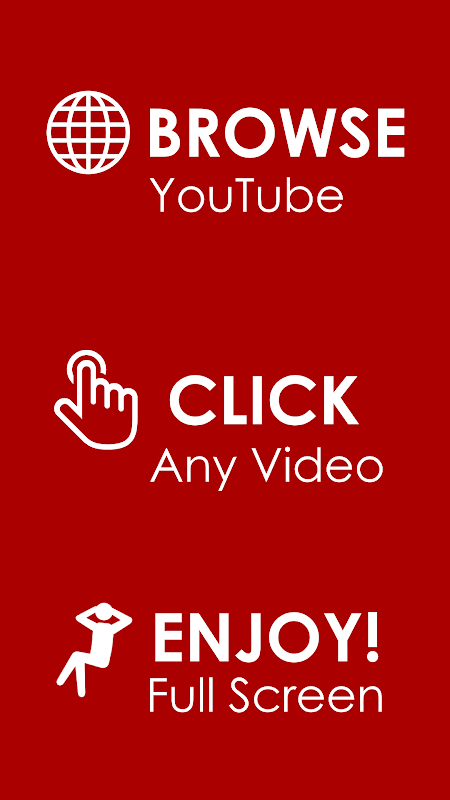 An easy, simple and lightweight video player for playing any YouTube video quickly in Full Screen or Floating window mode. Just browse with the built-in YouTube browser, click to select a video to watch and view it immediately in full screen or a small movable window that floats above other apps.