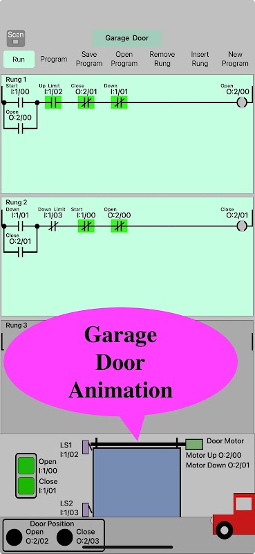 شبیه ساز ساده PLC Ladder Logic با انیمیشن های تعاملی برای برنامه شما