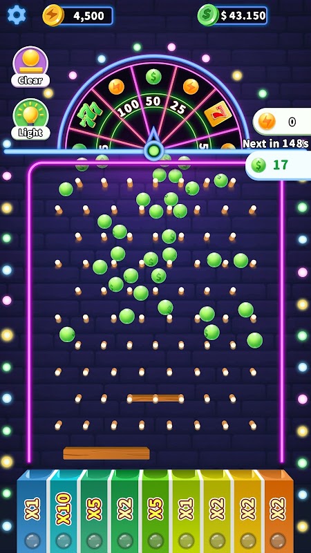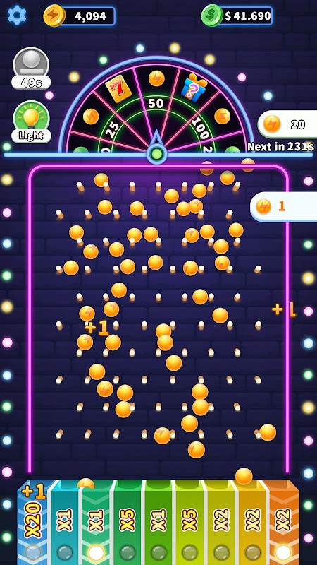 Click to throw the ball and the ball will fall from the top; light up all the light bulbs to trigger the slot machine. Generally speaking, the number of balls determines the richness of the reward!