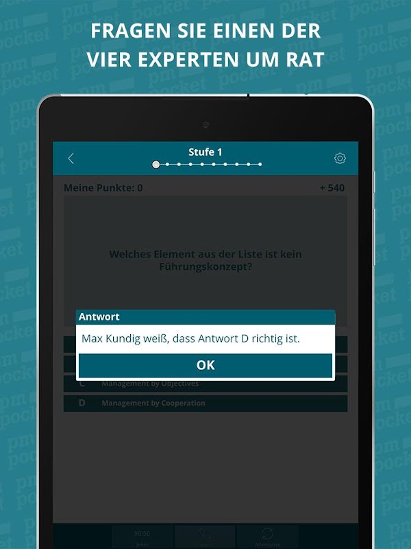 Bei einer falsch beantworteten Frage haben Sie leider verloren und müssen von vorn beginnen – aber erst Übung macht bekanntlich den Meister, bzw. den PM-Experten!