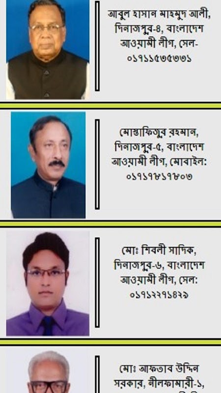 نام نخست وزیر و تمام وزرای و نمایندگان مجلس، از جمله نخست وزیر بنگلادش، تصویر و شماره تلفن همراه