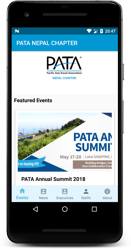 Event App of Pacific Asia Travel Association (PATA) Nepal Chapter.