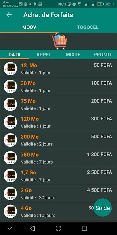 ابزار برای عملیات USSD در FLOOZ (MOOV-AFRICA) و MIXX BY YAS (YAS TOGO)