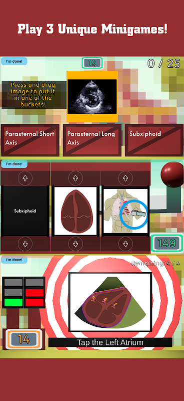 بلافاصله به کارناوال POCUS بیایید و برخی از بازیهای ما را انجام دهید تا به شما در تمرین شناسایی تصویر اولتراسوند کمک کند! آیا شما دانشجوی پزشکی هستید؟ سونوگرافی پزشکی؟ یا شاید حتی کسی که به سونوگرافی قلب علاقه دارد؟ اگر شما پسر گلی هستید، ما این تجربه را برای شما داریم! برای اجرای یکی از 3 مینیبازی ما، وارد زمینهای عجیب و غریب کارناوال POCUS شوید. اینها می توانند به شما در تمرین مهارت های مختلف از قرار دادن موقعیت پروب تا شناسایی آسیب شناسی کمک کنند! این بازیها را برای برنده شدن بلیتهایی انجام دهید که میتوان از آن برای باز کردن مشکلات سختتر یا حتی یک تروفی جدید و جذاب استفاده کرد!