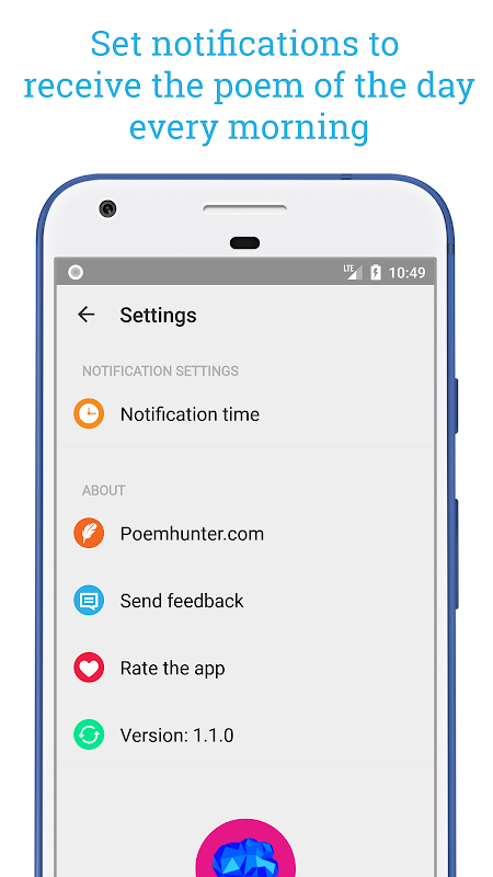 - Poem of the day notifications: Register and get the poem of the day every day as a notification