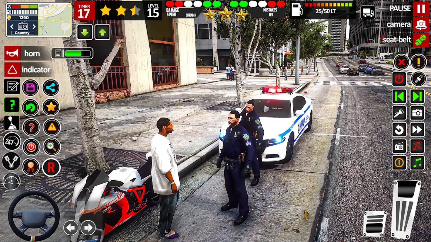 در این شبیه ساز پلیسی با اکشن بالا، شما به عنوان یک افسر تازه کار شروع می کنید و با انجام ماموریت های هیجان انگیز پیش می روید. این بازی 5 سطح چالش برانگیز را ارائه می دهد که هر کدام با وظایف مختلفی مانند دستگیری مجرمان و پاسخ به شرایط اضطراری پر شده است. هر سطح اقدامات جدیدی را به ارمغان می آورد، از صحنه های تعقیب و گریز پلیس سه بعدی با سرعت بالا گرفته تا مبارزه پلیس زمینی با گانگسترها. شما مسئول محافظت از شهر جرم و جنایت خود، انتخاب درست، دستگیری افراد بد و بالا رفتن از رتبه ها به عنوان یک افسر پلیس محترم شهر هستید.