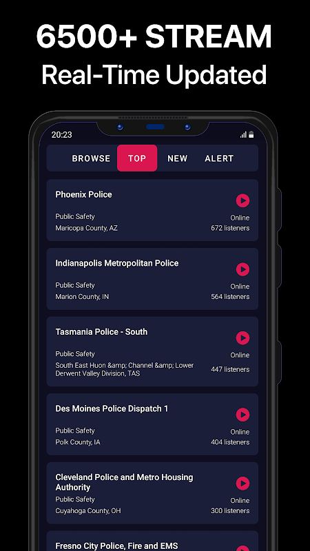 Police Scanner Pro بزرگترین منبع ارتباطات رادیویی اسکنر در جهان است. با Radio Scanner Police می توانید به صورت زنده به صداهای حرفه ای هزاران پلیس/آتش/رادیو اسکنر از سراسر جهان با صدای شفاف گوش دهید.