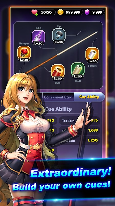 فیزیک فوق واقع گرایانه و بازتاب 3D واقعی مسابقات واقعی 1V1 واقعی و مهیج را ارائه می دهد. شکوه بیلیارد مورد نظر شما اولین [افسانه بیلیارد] در جهان است. برخورد را بلافاصله آغاز کنید و روح بیلیارد خود را بسوزانید! در یک ضربه معروف باشید!