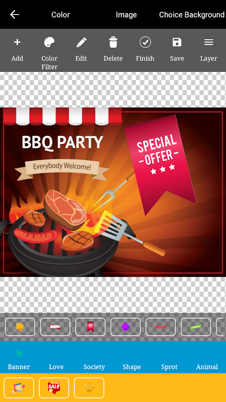 The "Post to Social Media (Crop & Swap photo)" application provides hand-selected backgrounds, textures, stickers, and special fonts for creating banners, posters, and flyers to create your own. Advertise; make cover and banners like the real ad experts.