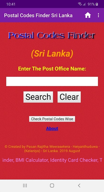 වර්ථමානයේ ලිපිනයක් ලිවීමේදි ලිපිනයට යටින් තැපැල් ස්ථානයේ සංකේත අංකය යෙදීම සිදුවෙනවා. එමෙන්ම Ebay හෝ වෙනත් අන්තර්ජාල වෙබ්සයිට් වල අයදුම්පත් පිරවීමේදීත් මේ තැපැල් සංකේත අංකය උවමනා වෙනවා. එහෙත් බොහෝ දෙනාට තමන්ගේ ලිපිනයට අදාල තැපැල් කාර්යාලයේ සංකේත අංකය පවා හොයා ගැනීම ගැටලුවක් වී තිබෙනවා. ඊට විසදුමක් ලෙස මේ App එක භාවිතා කරන්න පුලුවන්. මෙමගින් තැපැල් කාර්යාලයේ නම සදහන් කර එහි තැපැල් සංකේත අංකය ද තැපැල් සංකේත අංකය ලබා දී තැපැල් කාර්යාලයේ නමද බලා ගත හැකිය.