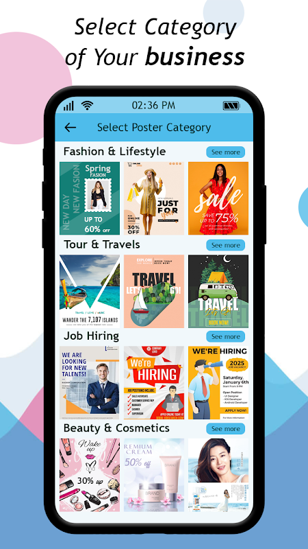 پوسترهای سفارشی خود را سریع و آسان با برنامه پوستر ساز ما بدون نیاز به مهارت طراحی بسازید. یک پوستر حرفه ای در دستان خود داشته باشید. اپلیکیشن Poster Maker برای شما میتواند به راحتی پرطرفدارترین قابهای عکس را انتخاب کنید و از عکس خود برای افزودن به آنها استفاده کنید. از این برنامه پوستر ساز استفاده کنید تا تجارت خود را در رسانه های اجتماعی با سرعت بیشتری رشد دهید. پوستر ساز یک ابزار فوق العاده است که پست های معمولی شما را در عرض چند ثانیه به پوسترهای خلاقانه تبدیل می کند.