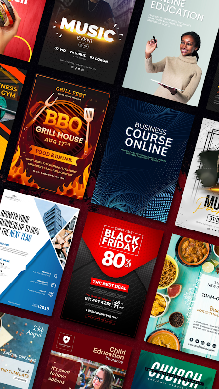 با برنامه Poster Maker Flyer Creator ما پوستر سفارشی خود را سریع و آسان ایجاد کنید. بدون نیاز به مهارت طراحی بسیاری از طراحی قالب سریع و آسان برای استفاده.