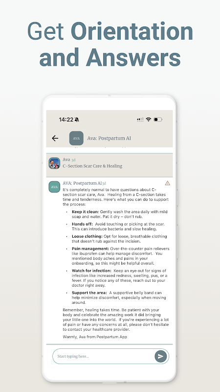 * PPD (افسردگی پس از زایمان): فراتر از یک آزمایش، آوا، چت هوش مصنوعی ما، پشتیبانی و درک را در زمان واقعی ارائه می دهد.