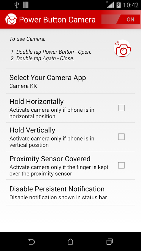 NB. فراموش نکنید که برای انتخاب دوربین خود را برنامه در تنظیمات برای اولین بار!