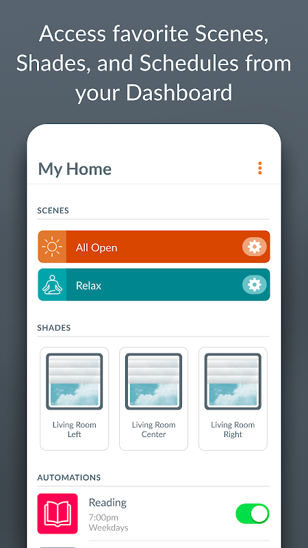 • تنظیمات موقعیت سایه سفارشی به نام «صحنه ها» را برای راحتی، یا برای مدیریت نیازهای نور طبیعی و حفظ حریم خصوصی خود در طول روز ایجاد کنید.