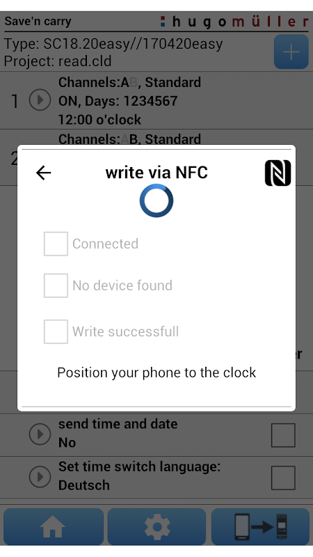 هوگو مولر ذخیره 'برنامه N حمل و لوازم جانبی بسیار مفید است. درست به راحتی برنامه سوئیچینگ خود را و یا پیکربندی محصول بر روی دستگاه تلفن همراه خود را و یا در کامپیوتر خود و انتقال داده یا به طور مستقیم با یکدیگر رقابت NFC یا غیر مستقیم از طریق بلوتوث / USB آداپتور PP 60.00 نرم افزار برای محصول خود را.