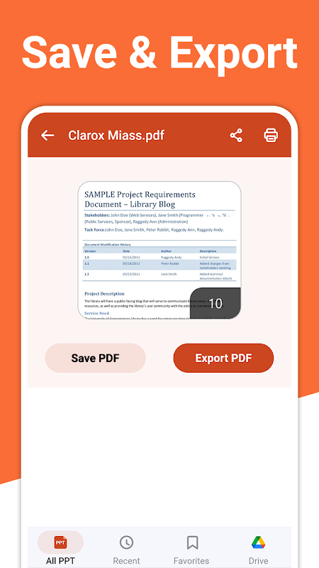 PPT Reader - PPTX Viewer برای Android قادر به نمایش اسلایدها است. شما به راحتی می توانید اسلایدهای خود را به شیوه ای حرفه ای تنظیم و ارائه دهید. با نمایشگر PPTX میتوانید روی اسلایدها بزرگنمایی یا کوچکنمایی کنید، به اسلایدها و یادداشتهای خاص بروید. میتوانید کتابهای ppt، اسناد و اسلایدهای سخنرانی را بخوانید، مشاهده و جستجو کنید. همچنین برای کارکنان اداری که می خواهند ارائه های خود را آماده کنند مفید است. همچنین، خواننده PPT آفلاین به شما امکان می دهد آن را با خانواده و دوستان خود به اشتراک بگذارید.