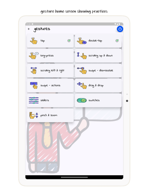 هدف این برنامه کمک به کاربرانی است که تازه وارد اندروید شدهاند تا با حرکات مختلفی که در هر برنامه استفاده میشود مانند ضربه زدن، دو بار ضربه زدن، فشار دادن طولانی، اسکرول کردن، کشیدن انگشت و کشیدن و رها کردن آشنا شوند.