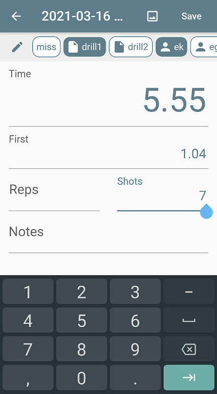 * تمام تمرینات خود را ذخیره کنید. زمانها را به صورت دستی وارد کنید، تمرینهای مکرر با آتش خشک را اجرا کنید یا دادههای زمانی را از تایمرهای شات مجهز به بلوتوث استخراج کنید.