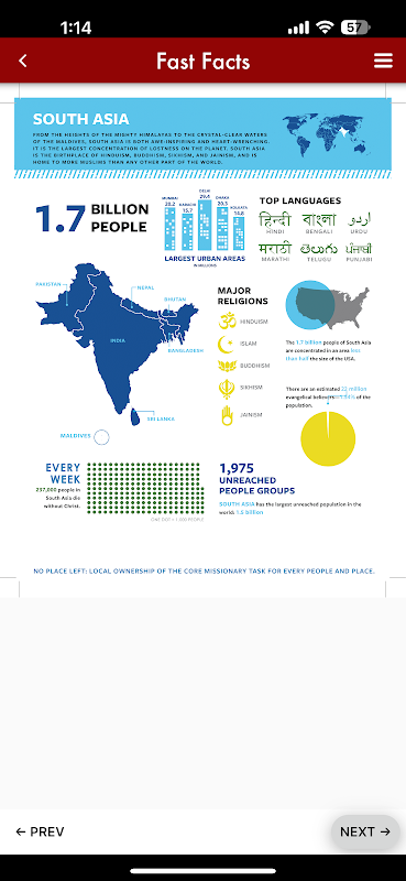 ما شما را تشویق میکنیم تا به تنظیمات این برنامه بروید و یادآوری روزانه را برای دعا تنظیم کنید. هر روز یک راه استراتژیک و آگاهانه برای دعا برای کار در میان آسیای جنوبی دریافت خواهید کرد. ممکن است برای شما مفید باشد که به لیستی از اصطلاحات کلیدی نگاه کنید، که در منو یافت می شود.