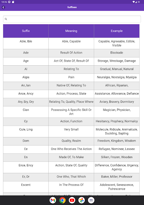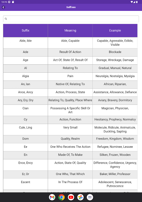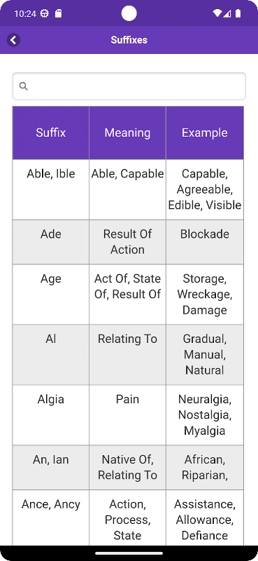 می توانید پیشوندهای رایج ، موارد اضافی و ریشه کلمات مشترک را از این برنامه اندرویدی سبک یاد بگیرید.