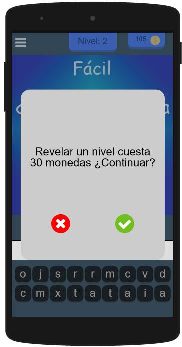 Si tienes alguna duda, no temas en utilizar las monedas que el juego trae incorporado para ofrecer pistas o, simplemente revelar el nivel entero. ¿Te quedaste sin monedas? No te preocupes, con la opción de 'ver el vídeo' te recompensaremos con monedas extras para seguir jugando!! o sino, pídele ayuda a un amigo con las opciones que la aplicación te ofrece.