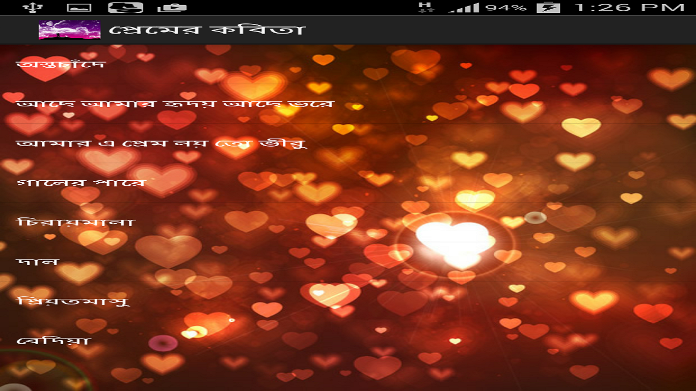 I think there is none who does not fall in love in his/her life. for those people! who are in love! i made an app as love poem/ Premer Kobita, it has a soft background music with sweet background image. Text are as Bangali. so i hope you will love it and share with your friends.