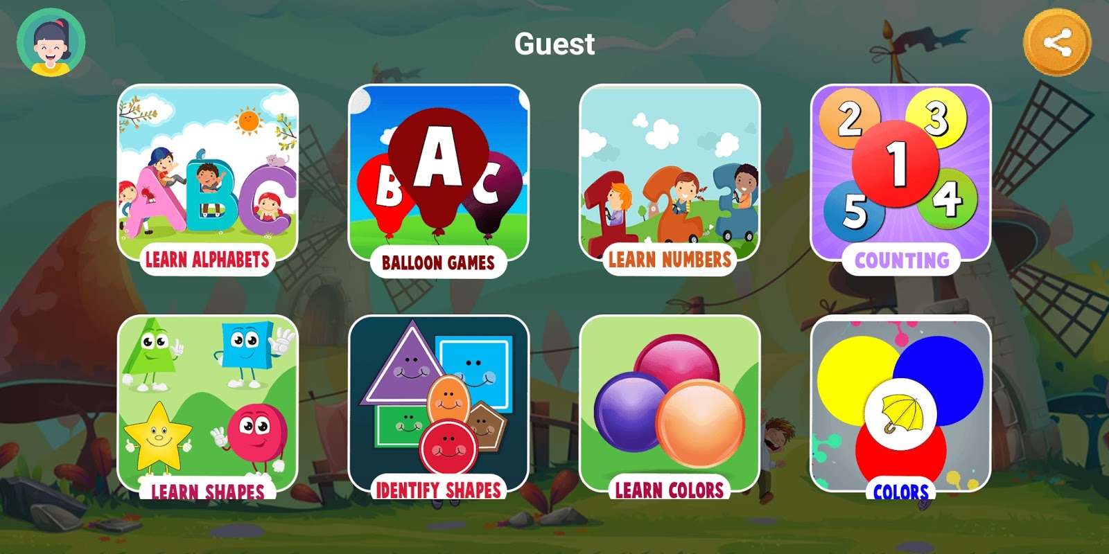 ★ Test games (Balloon & Counting) for Alphabets and Numbers.