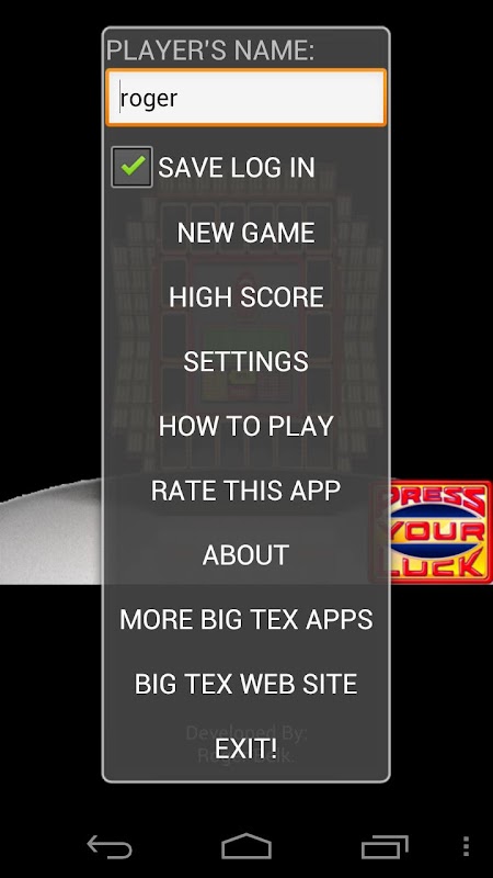 PRESS YOUR LUCK Spin, Designed after my favorite game show when I was growing up. "PRESS YOUR LUCK" The online versions are drawn out with things other than Game Play, so I'd figured I'd build my own. I have worked on this for 5 weeks now and I have plans for some updates, but wanted to get it out there and get some input from all of you, on what I could do to make it better, PLEASE IF YOU ARE HAVING PROBLEMS WITH THIS APP CONTACT ME, AND LET ME TRY TO FIX IT. If you have a HARD KEYBOARD DO NOT DOWNLOAD THIS APP (Your screen is too small)