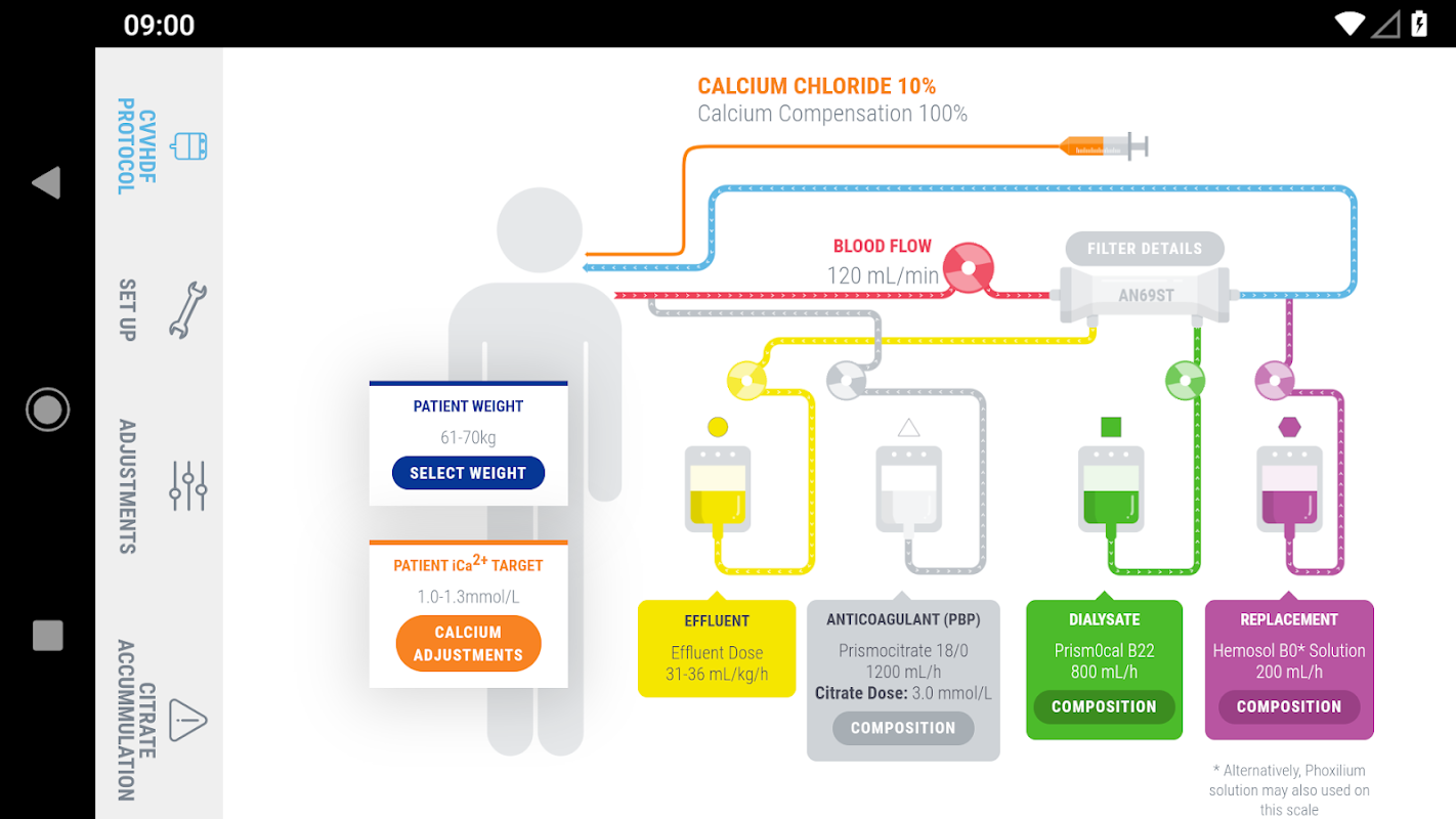 پروتکل Prismaflex CVVHDF سیترات CRRT با استفاده از Prismocitrate 18/0 و Prism0cal B22