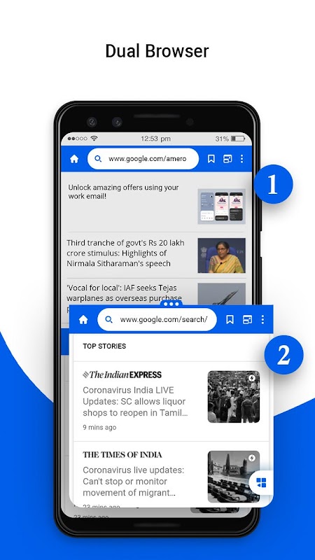 Private, fast, & secure browser with dual split-screen for multiscreen browsing.