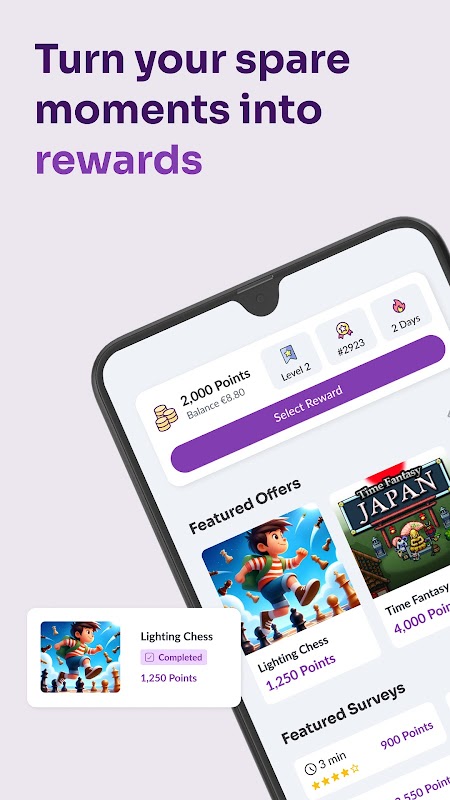 بازی و کسب درآمد: در بازی ها شیرجه بزنید، به آن نقاط عطف دست یابید یا نظرسنجی های سریع را کامل کنید. مراقب رشد امتیازات خود باشید!