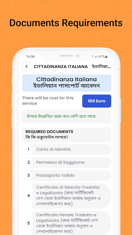 سرویس CAF: سرویس CAF در این برنامه گنجانده شده است تا کلیه خدمات را به درستی به مهاجران ایتالیایی ارائه دهد. بدون نیاز به هدر دادن زمان و هزینه برای رفتن به دفتر CAF در زندگی پرمشغله خود، خدمات مناسب را در خانه با یک کلیک از این برنامه موبایل شگفت انگیز جادویی دریافت خواهید کرد!