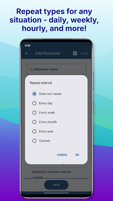 ✔ برنامه های ماهانه: تاریخ خاص، روز/هفته خاص ماه (به عنوان مثال، سه شنبه دوم)، یا هر X ماه