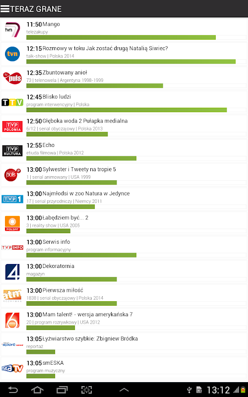 - wyświetlanie aktualnego programu TV na wybranych stacjach