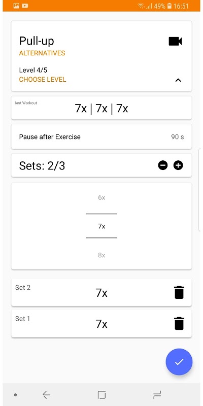 • بسته شدن تمرینات، تکرار، زمان و وزن را وارد کنید