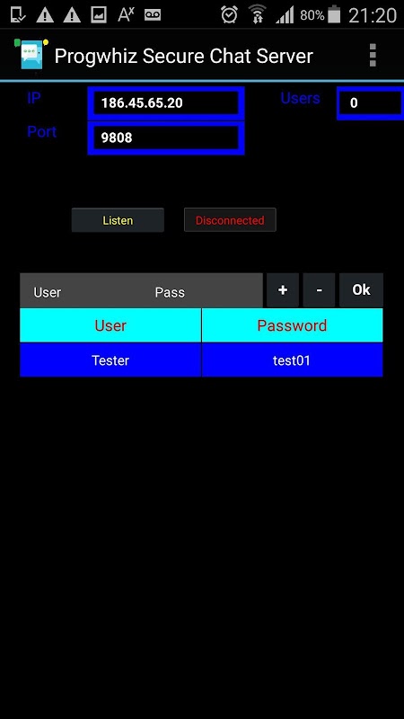 Progwhiz Secure Chat Server یک برنامه سرور Android است