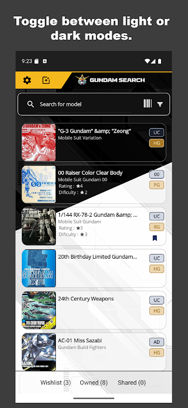 راهنمای مجموعه Gunpla و برنامه Wishlist برای مدلها و GCG.