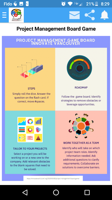 Use the board game to strengthen team cohesion, understanding of PMBOK best practices, integration management, and as a lightweight planning tool prior to initiating a project. The android app includes the following: