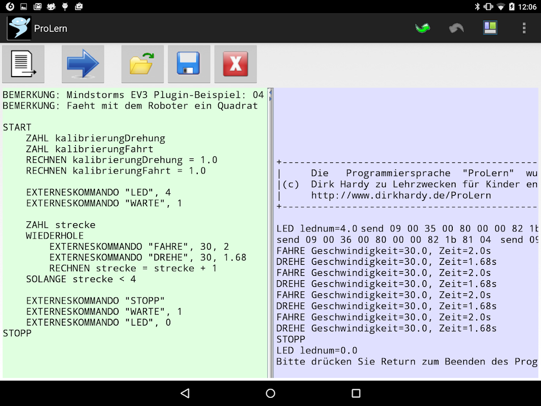 این افزونه گسترش قابلیت های ProLern به دستورات خارجی برای کنترل یک ربات لگو Mindstorms EV3 (سیستم عامل اصلی).