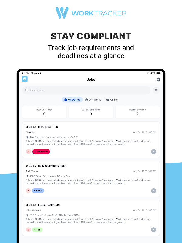 WorkTracker یک برنامه مدیریت میدانی یکپارچه برای پیمانکاران مرمت و تنظیم کننده بیمه است. چه در حال مدیریت کاهش آب، آسیب آتش سوزی، کاهش یا بازسازی باشید، WorkTracker به شما کمک می کند سازگار بمانید، همه چیز را مستند کنید و هر کار را از دستگاه تلفن همراه خود مدیریت کنید.