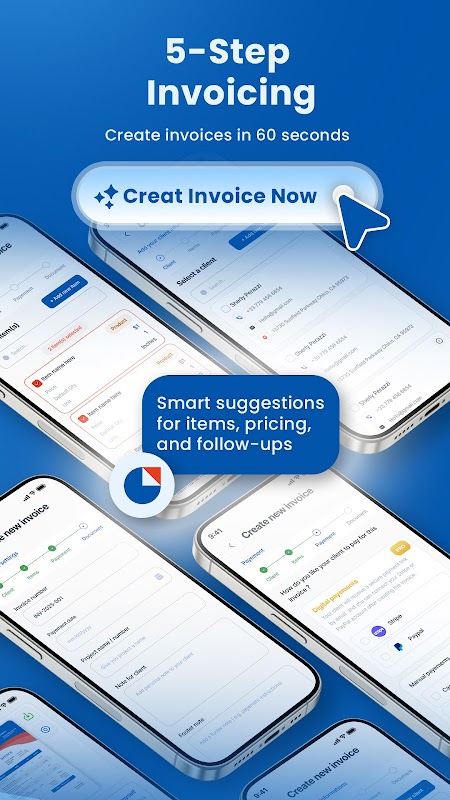 با استفاده از یک گردش کار ساده و مبتنی بر موبایل، فاکتورها و برآوردهای حرفهای را در کمتر از 60 ثانیه ایجاد کنید. چه در محل کار باشید و چه از راه دور کار کنید، پرونتو اینوویس به شما کمک میکند تا برای مشتریان صورتحساب صادر کنید و سریعتر پرداخت کنید - حتی زمانی که آفلاین هستید.